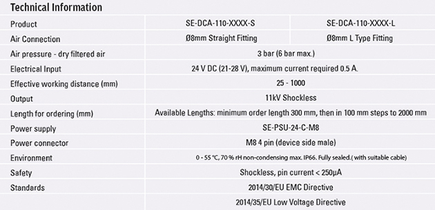 • Compact design, ideal for most ionisation applications
